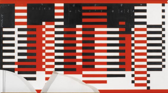 Saunders’s Vorticist paintings are not supposed to show a particular place or idea, but cleverly bring to mind associations with architecture, stories and human experiences. She used bold colour combinations that had rarely been seen in art before and created a sense of energy with overlapping and interlocking shapes. She sometimes cut out extra shapes and glued them to her works on paper, such as the circle at the centre of Vorticist composition with figures, black and white.