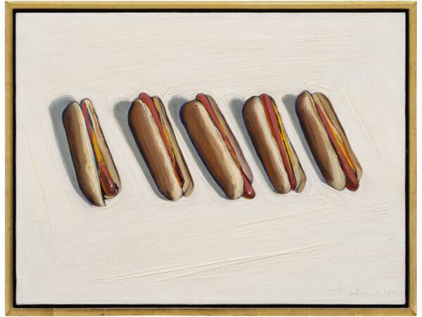 Thiebaud considered the everyday objects of American life to be a vital subject for contemporary art, and he saw his work as continuing the radical legacy of earlier still-life paintings by Chardin, Manet, Cézanne and others. Thiebaud believed in the importance of commonplace objects that might otherwise be overlooked or considered kitsch. His work turns hot dogs, lemon meringue pies and glossy cream cakes into the stuff of profound modern painting.