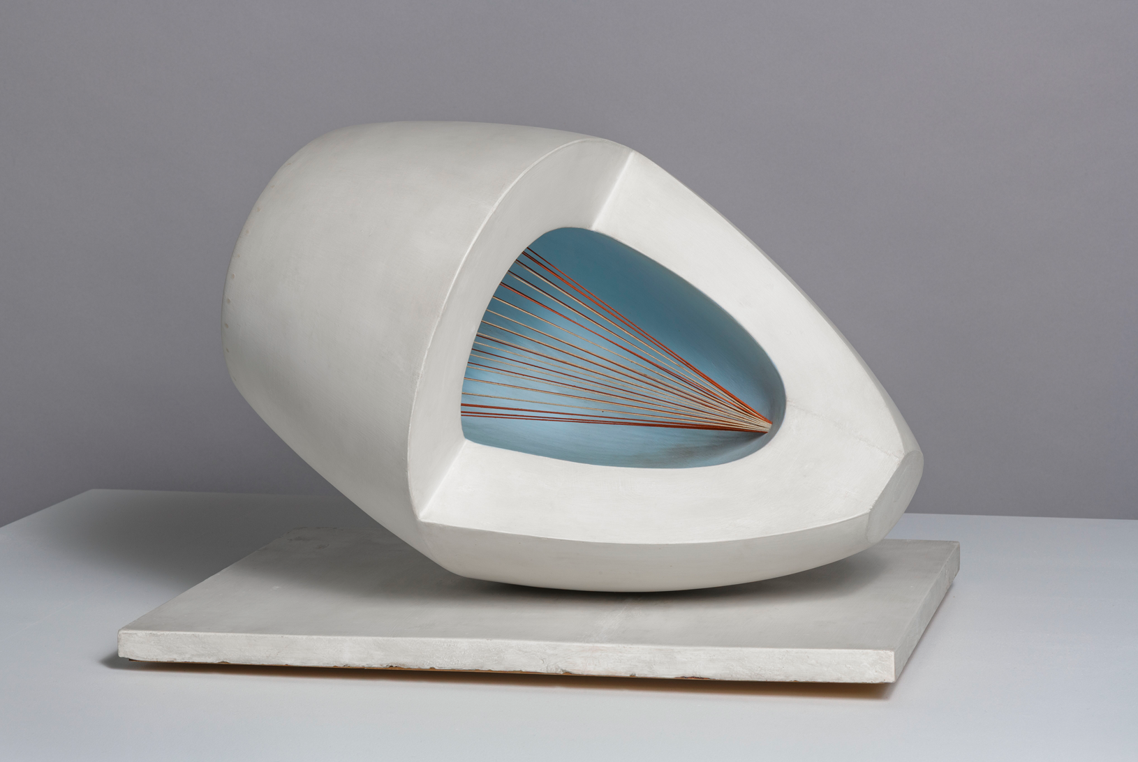 Other seminal painted stringed sculptures in the exhibition include Wave, 1943-44, from the National Galleries of Scotland and Pelagos (‘sea’ in Greek), 1946 from Tate, which was inspired by the bay in St Ives in Cornwall. The exhibition also unites for the first time from private and public collections the six progressively larger versions of the stringed Sculpture with Colour (Deep Blue and Red).