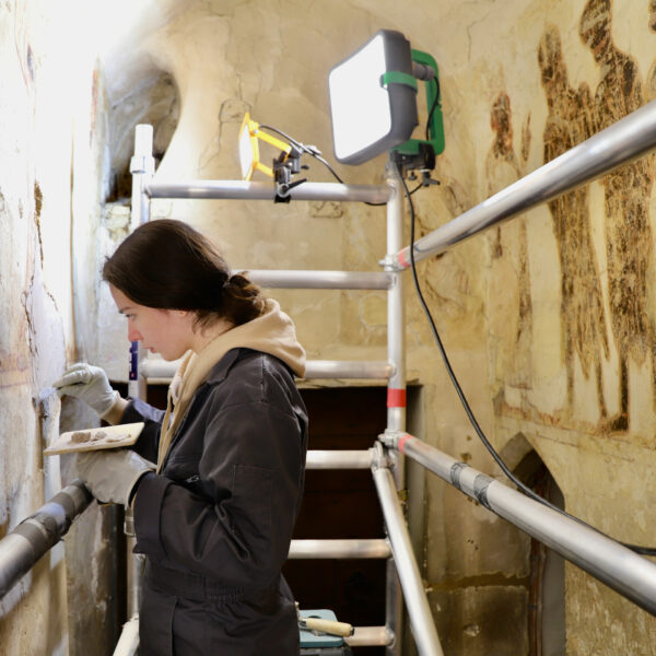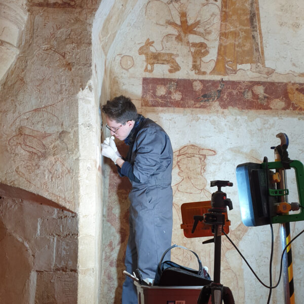 - Closely supervised in situ training for Courtauld wall painting conservation Masters students, learning skills in recording, investigations, analysis and interventions, within an ethical and technical framework.