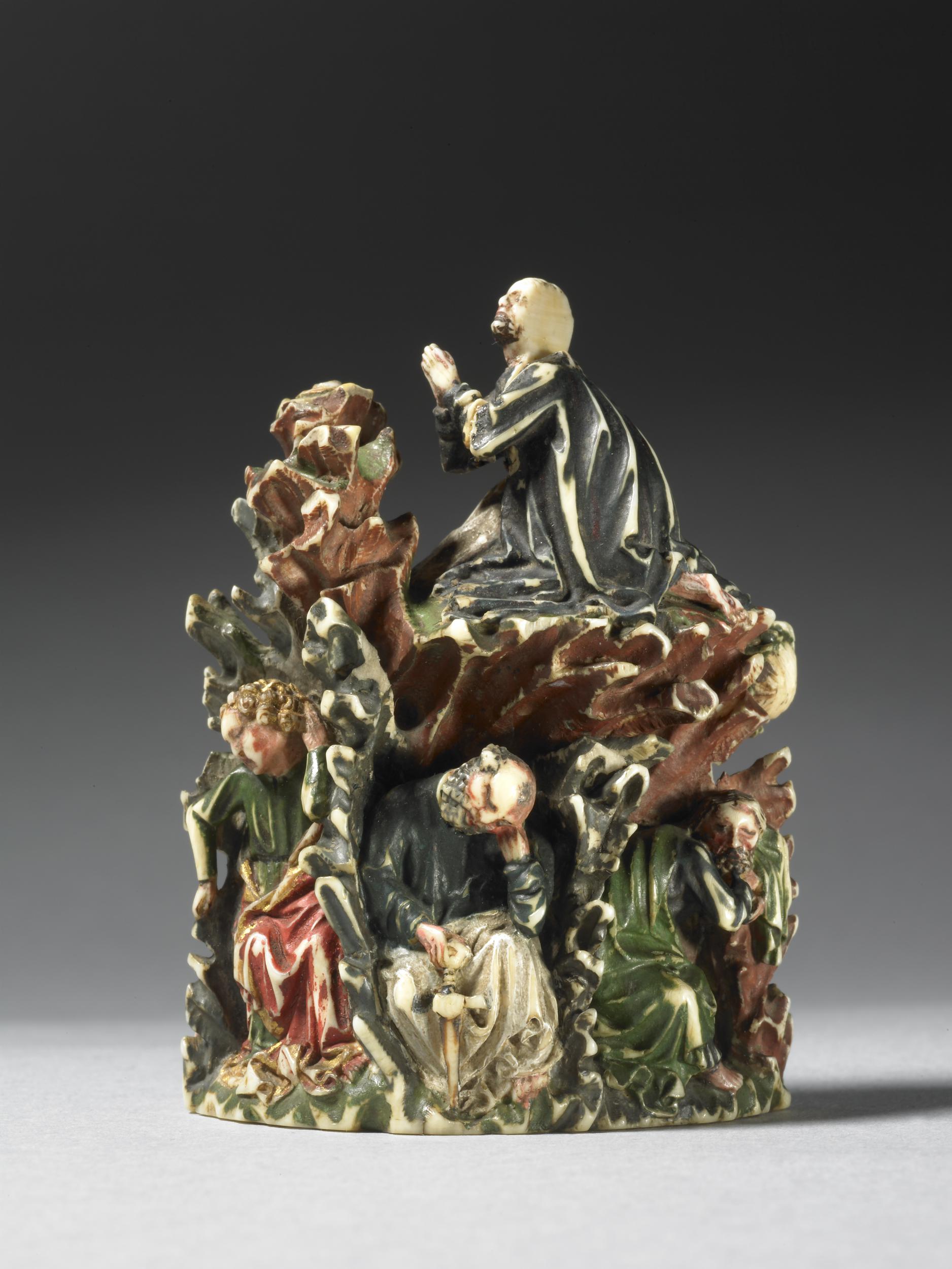 Fig. 1 Anonymous, Sculpture (Gethsemane), ca 1420. Polychromy and gilding on ivory, 6.6 x 4.7cm. The British Museum, London. © The Trustees of the British Museum