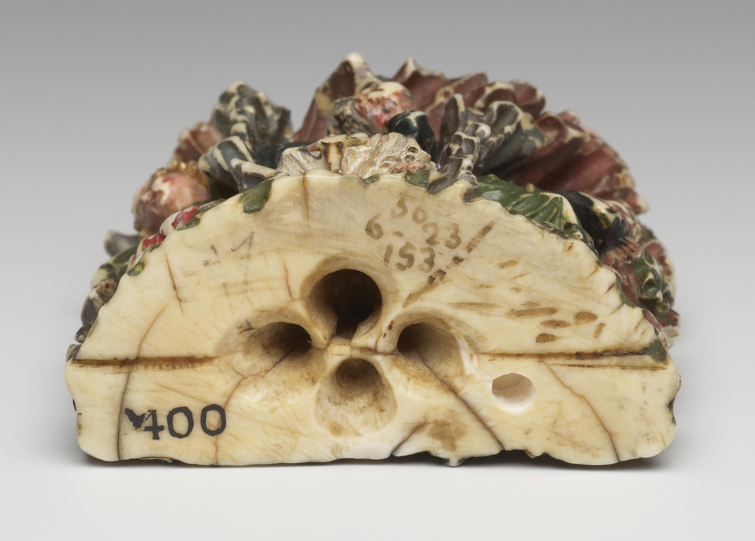 Taken together, the object’s dual iconography and the cluster of holes at its base has perplexed those attempting to establish its original function. In 1905, A. Maskell proposed that the object sat in the volute of a crosier.13 Four years later, Dalton suggested that the holes received a cord, allowing the carving to be worn like ‘a Japanese netsuke’.14 In 1924, Koechlin dismissed Maskell’s theory without offering an alternative, and no direct attempt to determine the object’s function has been made since.15
