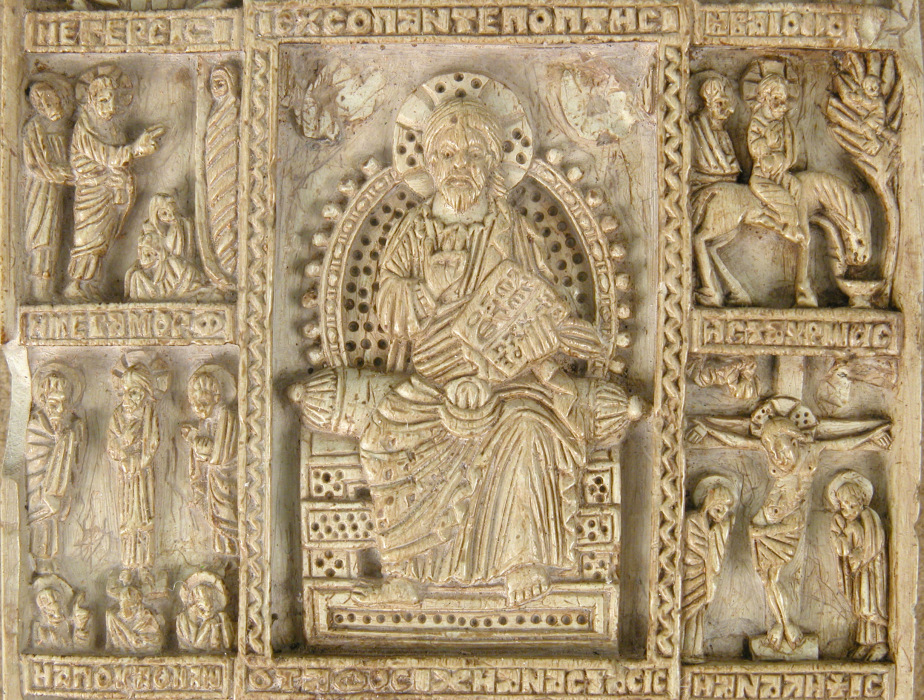In the Metropolitan Museum of Art, New York, there is a very small but iconographically and epigraphically rich Byzantine icon. Across the thirteen tiny steatite plaques of the Icon of Christ Pantepoptes, c. 1300–1500, there are over 100 figures represented and 324 characters from the Greek alphabet. Particular attention is paid to the image of Christ: he is depicted 23 times, blessing choirs of prophets and saints, appearing in scenes from his life, and enthroned in the largest central image.