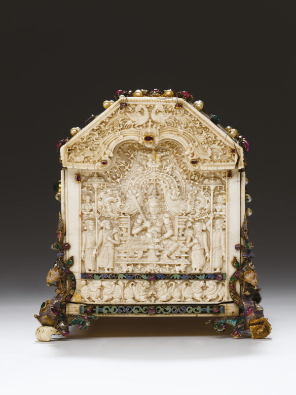 Little remains of the monuments, sculptures, and paintings of sixteenth century Sri Lanka following the violent destruction of temples, both Buddhist and Hindu, that took place during Sri Lanka’s first encounter with a European colonial power. To understand the visual culture of this tumultuous time, one must therefore turn to the royal gifts produced for Portuguese patrons. These ivories provide rare glimpses into the courtly and religious traditions of Sri Lankan royalty. Portraying bodhisattva-like kings seated at court, these carvings illustrate an aspect of sixteenth-century kingship that has yet to be extensively examined.